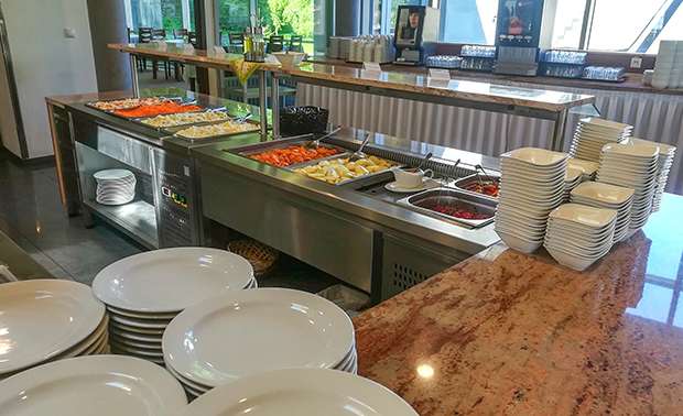 Jemné škvŕkanie v bruchu nás však vrátilo do reality. Presunuli sme sa do jedálne Breza, kde pre nás pripravili bufetovú večeru. Mäso na niekoľko spôsobov, zemiaky, ryža, šaláty, kompóty... A kto si prišiel otestovať silu vôle, môže zakývať čokoládovým palacinkám na tácke úplne vpravo. Alebo prehodnotiť priority :-)
