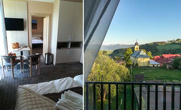 Chvíľu sa kocháme výhľadom z balkóna, máme pocit, že sme sa preniesli do rozprávky. Všade zeleň, v diaľke panoráma hôr a okolo nás neuveriteľný pokoj a ticho. V diaľke počuť len zurčanie potoka a občasné melódie operencov.