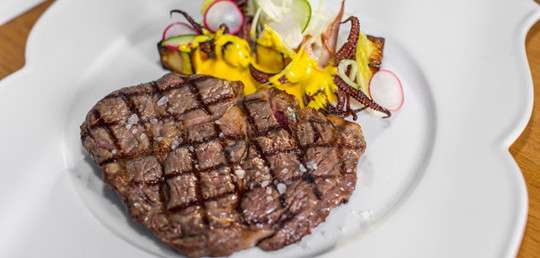 a špecializuje sa na steaky a plody mora. Počujete správne, Surf´n´Turf je zároveň aj názov netradičného typu kuchyne, ktorá sa sústreďuje na spojenie mäsa a darov mora. My sme si boli vyskúšať trojchodové