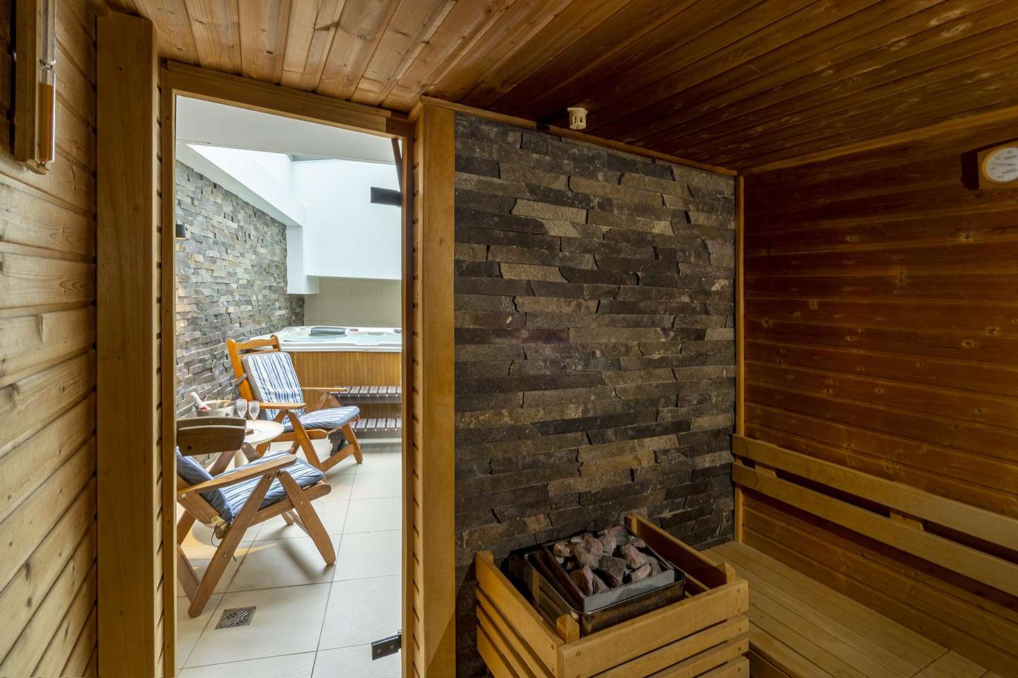 Vychutnajte si relax vo dvojici v elegantnom prostredí a hlavne v úplnom súkromí. Fínska sauna vás krásne prehreje, prečistí metabolizmus a stres odplaví perličková kúpeľ. Bublinky vás budú rozmaznávať nielen v jacuzzi, ale pookrejú aj vaše chuťové poháriky v podobe chladeného sektu. Jednoducho oddych v prvotriednej kvalite.