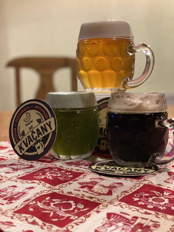 V Pivovare BUC Kvačany vám ponúknu domáce kvasinkové pivo, ktoré je výnimočné svojou chuťou a vôňou. Pivo je nepasterizované a nefiltrované z prvotriednych a vždy čerstvých surovín, bez ďalších úprav (Kvačianska voda, slad, chmeľ a kvasnice). V cene pobytu máte zahrnutú ochutnávku remeselných pív a v závislosti od výberu variantu aj darčekový set remeselných pív. Celoročnú ponuku tvoria jedinečné pivá Golden Lager 12˚, Copper ALE 12˚, Black Star 12˚, JOKERS 10˚ a špeciál Žihľavový ležiak 12˚.